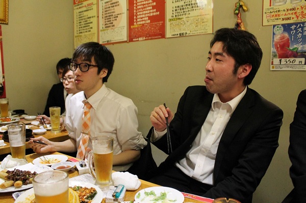 会長挨拶 まずは近況報告~ワンヤワンヤ 練習あるのみ!! ブレーンストーミング中~ワンヤワンヤ え、え、え、え? おいしくお酒も飲めました?? |